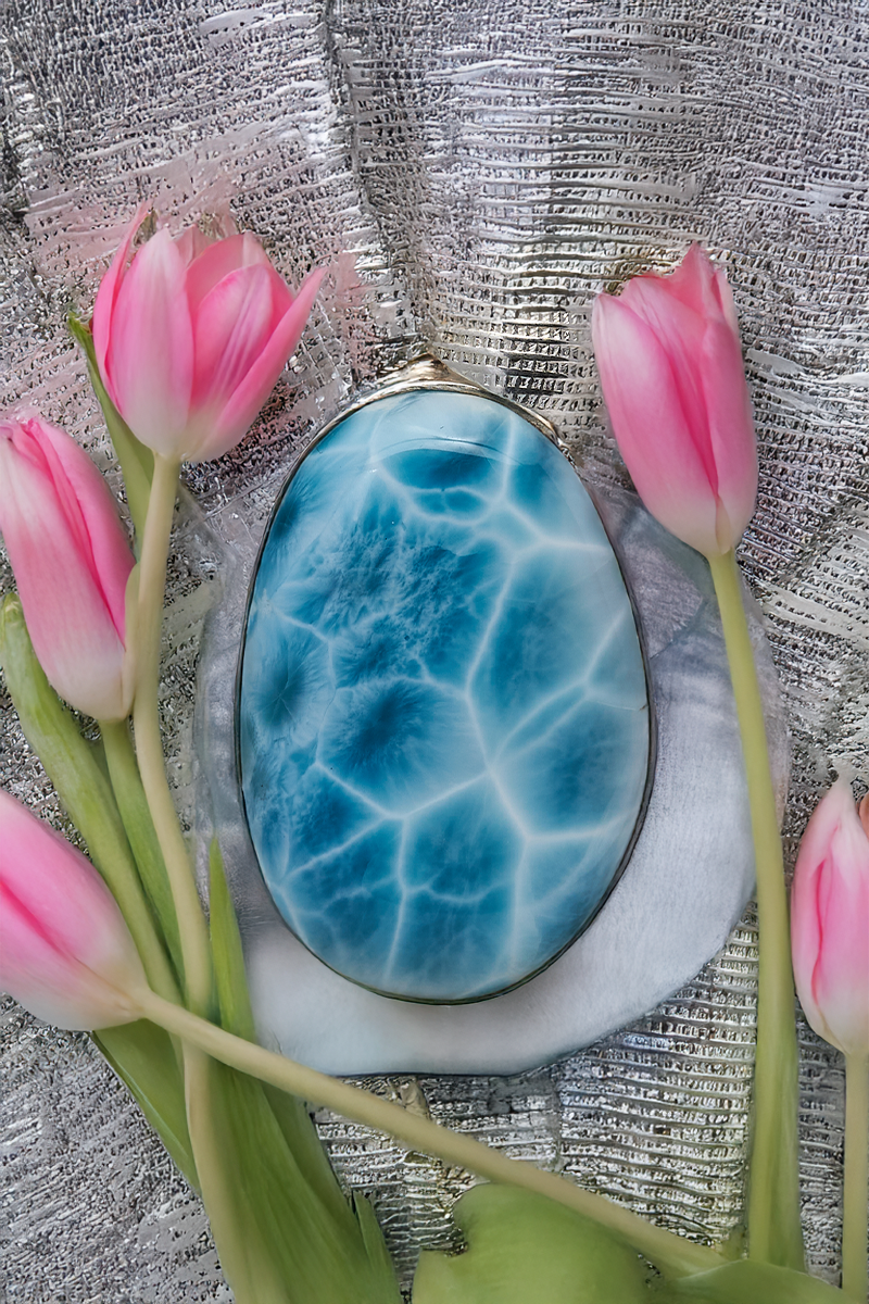 Larimar Gemstone, commonly known as the Atlantis Stone, is a beautiful, ocean blue pectolite who's unique blue colour comes as a result of copper substitution for calcium. The colour is rarely solid and it is different shades of blue with rough circles and white lines, interconnected throughout the stones. The brighter the blue, the more rare the stone.