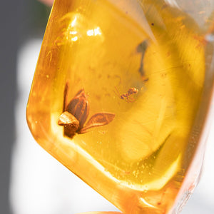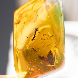 Beautiful Dominican Green Amber Fossil Cabochon, Flower, contain also fewer big ants, other insects, and more vegetable fossils.