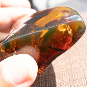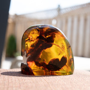 Beautiful Dominican Green Amber Fossil Cabochon, contain fewer vegetable fossils.