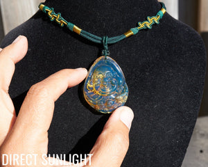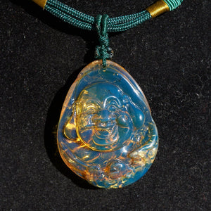 Carry the joy of the Laughing Buddha wherever you go with this authentic Dominican amber pendant. Hand-carved by skilled artisans, it glows with golden and blue tones that shift beautifully in the light. This one-of-a-kind spiritual necklace is perfect for bringing positive energy, prosperity, and a touch of Caribbean beauty to your day.