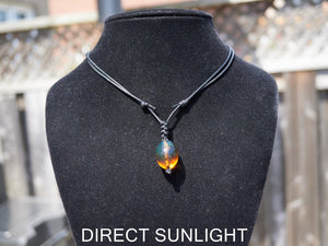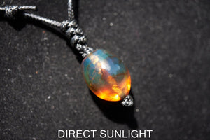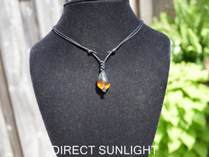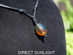 Discover the captivating beauty of this natural blue amber pendant—a truly unique gemstone that reveals stunning color transitions under different lighting. In direct sunlight, the amber glows with warm golden-orange hues, while subtle blue tones emerge in softer lighting, creating a mesmerizing play of colors.