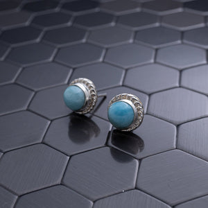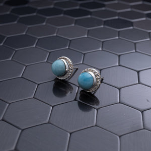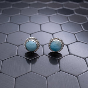 Beautiful Larimar Stone and 925 Silver, circle shaped rope earrings, a very elegant addition to your jewelry collection.