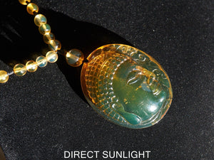 Bring a touch of nature’s elegance to your jewelry collection. This handcrafted Dominican amber necklace features polished amber beads and a Buddha pendant, combining spiritual charm with timeless style. Each bead carries the warm glow of authentic Dominican amber, prized for its natural beauty and positive energy.