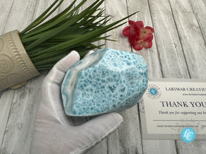 Dive into the serene beauty of the ocean with our Celestial Seascape Larimar Stone. Let this mystical gem be your guide to creative and spiritual exploration. Order now and capture a piece of the ocean's soul!