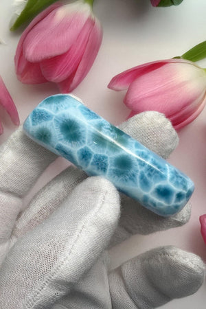 Experience the unparalleled beauty of a premium Larimar cabochon, sourced exclusively from the Dominican Republic—the only place on Earth where this rare gemstone is found. Renowned for its striking sky-blue to oceanic turquoise hues and ethereal white marbling, this top-grade Larimar exudes a serene, tropical allure that captures the essence of tranquil Caribbean waters.