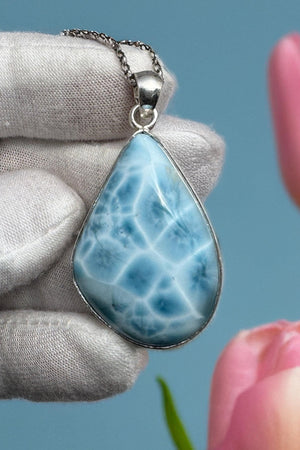 Larimar Teardrop Necklace AAA+ high quality on 925 sterling silver