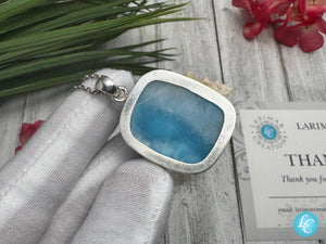 Beautiful Larimar pendant, nice blue color pattern, Open-back Larimar 925 sterling silver handmade , rectangular pendant