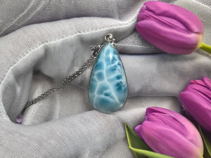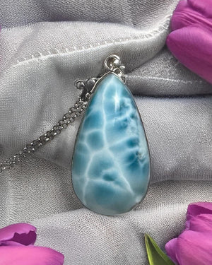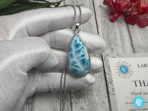 Add this elegant Larimar teardrop necklace to your collection or gift it to someone who appreciates the beauty and meaning of natural gemstones.