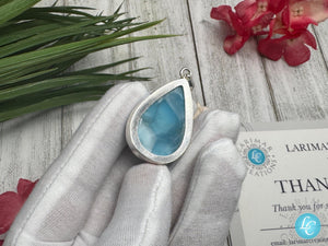 Beautiful High-Quality AAAA Larimar Teardrop pendant, lovely blue colour pattern, Open-back Larimar 925 sterling silver handmade pendant.
