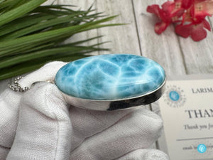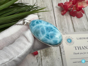 Beautiful High-Quality AAAA Larimar Teardrop pendant, lovely blue colour pattern, Open-back Larimar 925 sterling silver handmade pendant.