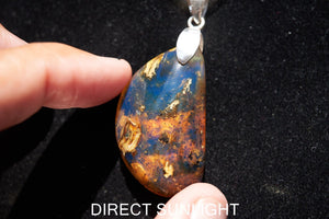 Discover the rare beauty of Dominican blue amber in this substantial handmade pendant, expertly set in solid 925 sterling silver. Sourced from the mountains of the Dominican Republic, this rare amber appears warm in normal light but glows with deep blue hues in sunlight, a phenomenon found in only a few deposits worldwide.