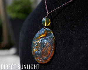 Design: Koi fish carving with amber bead and adjustable rope