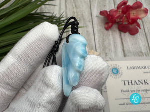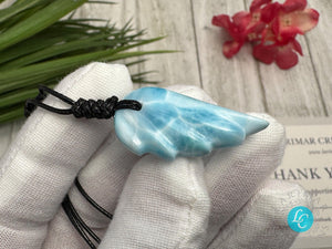 Exquisite Larimar Necklace features a delicate angel wing charm on a silver clasp. Handcrafted with love, this unique piece combines the calming beauty of Larimar with the symbolic power of an angel wing. The Larimar stone is known for its serene and soothing energy, promoting inner peace and tranquility. The necklace is made with high-quality silver, adding a touch of elegance to the overall design. Perfect as a gift for someone special or as a treat for yourself