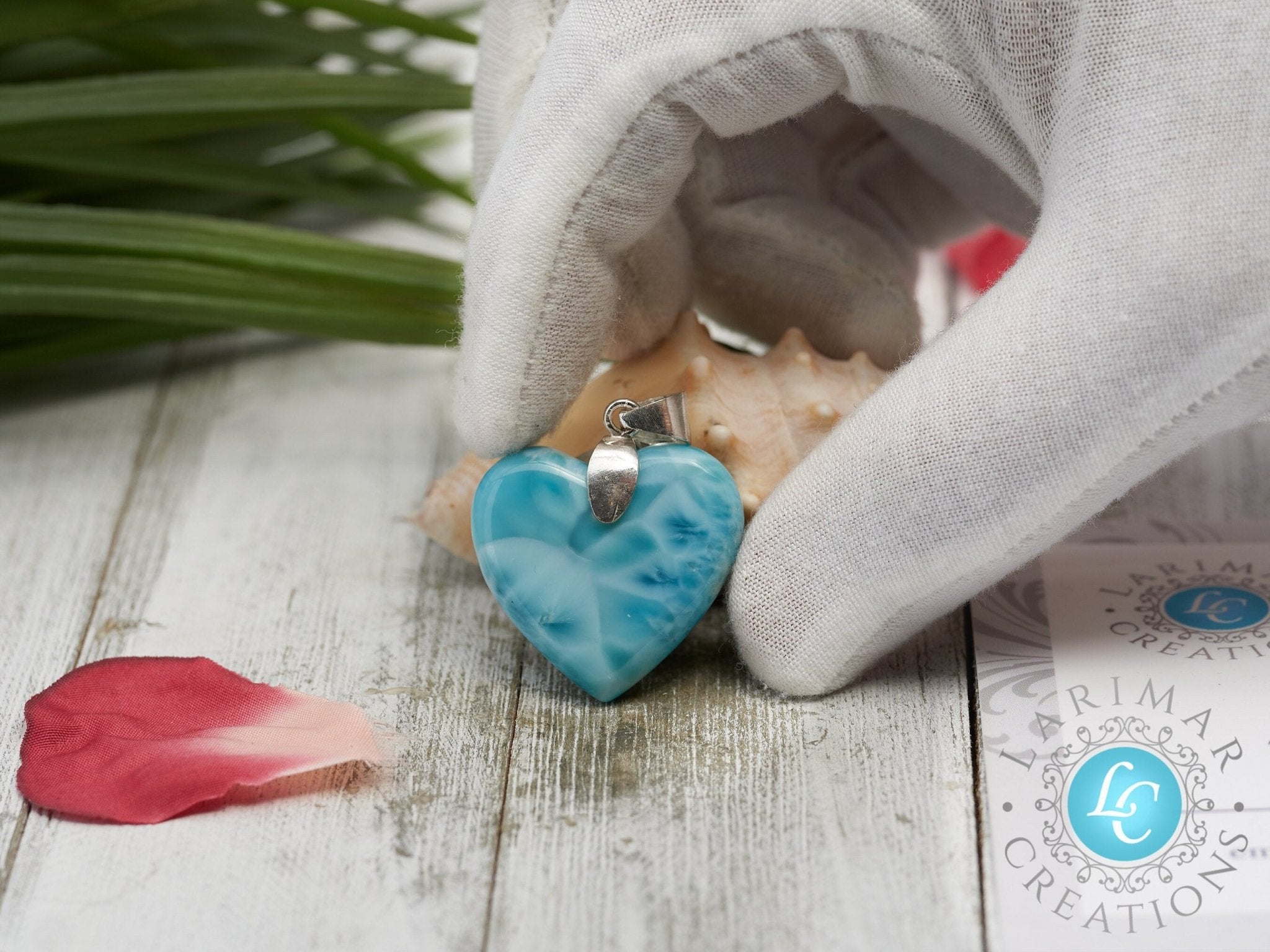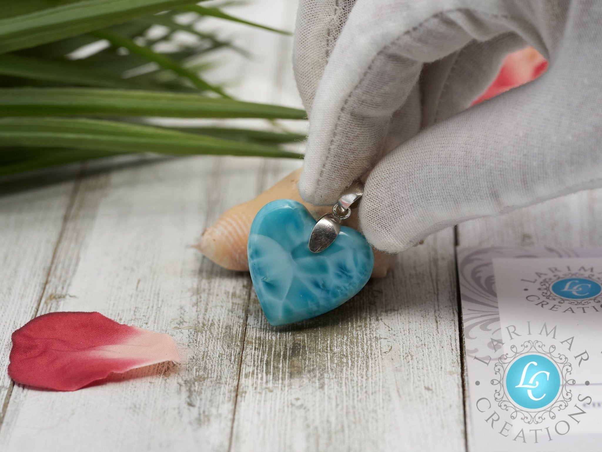 Gorgeous Larimar heart waves pattern on 925 sterling silver.