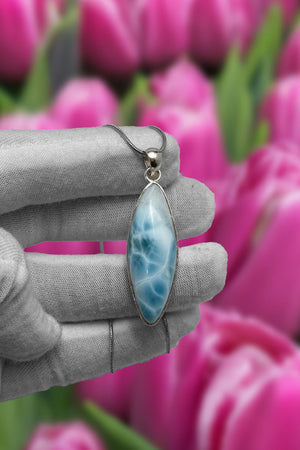 - High-Quality Larimar AAA+ Very strong blue Sea color and Great pattern, just gorgeous Larimar Big teardrop