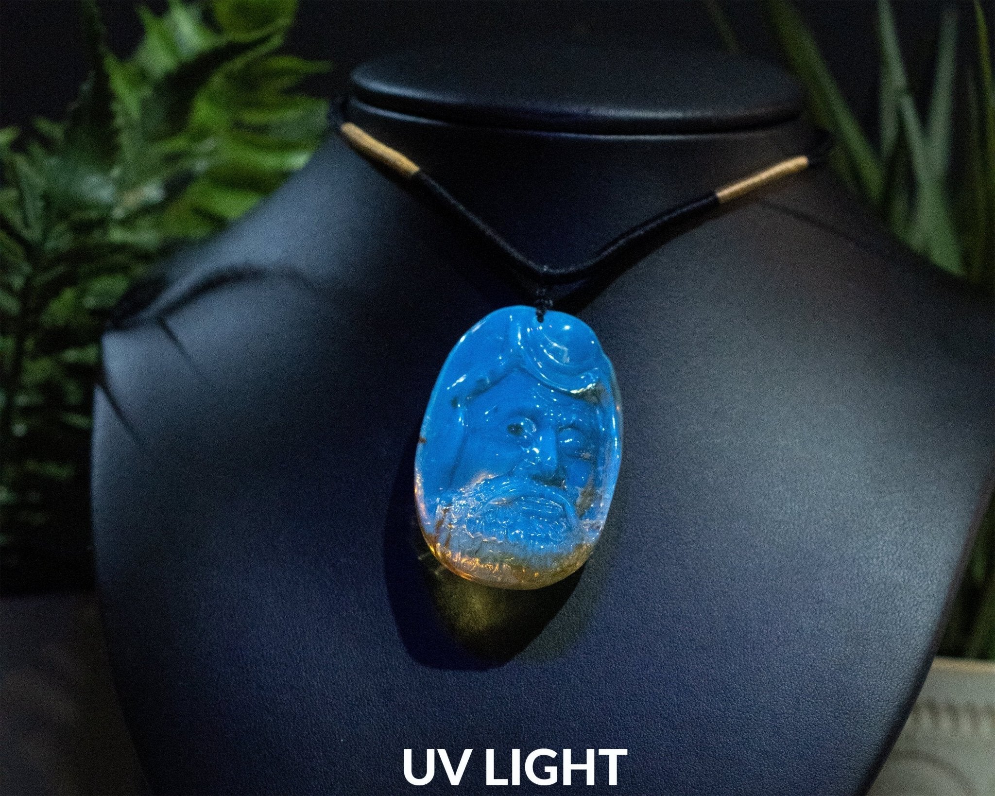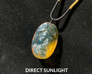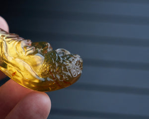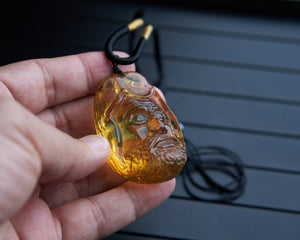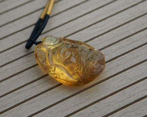 ❍ Hand-carved Dominican Blue Amber Pendant Natural Shaped Carving.