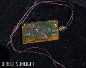 Carved from 100% certified green amber sourced from our own mines in El Valle, Dominican Republic, it comes ready to wear on an adjustable rope necklace — no setup needed, just spiritual elegance on the go.