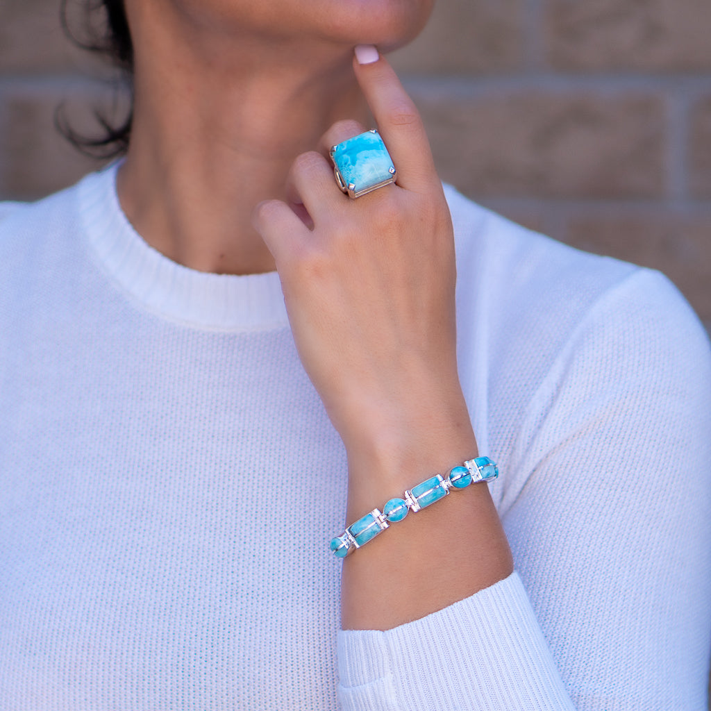 Then why not let that beauty shine through one of our gorgeous, one of a kind Larimar rings