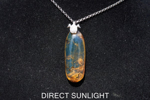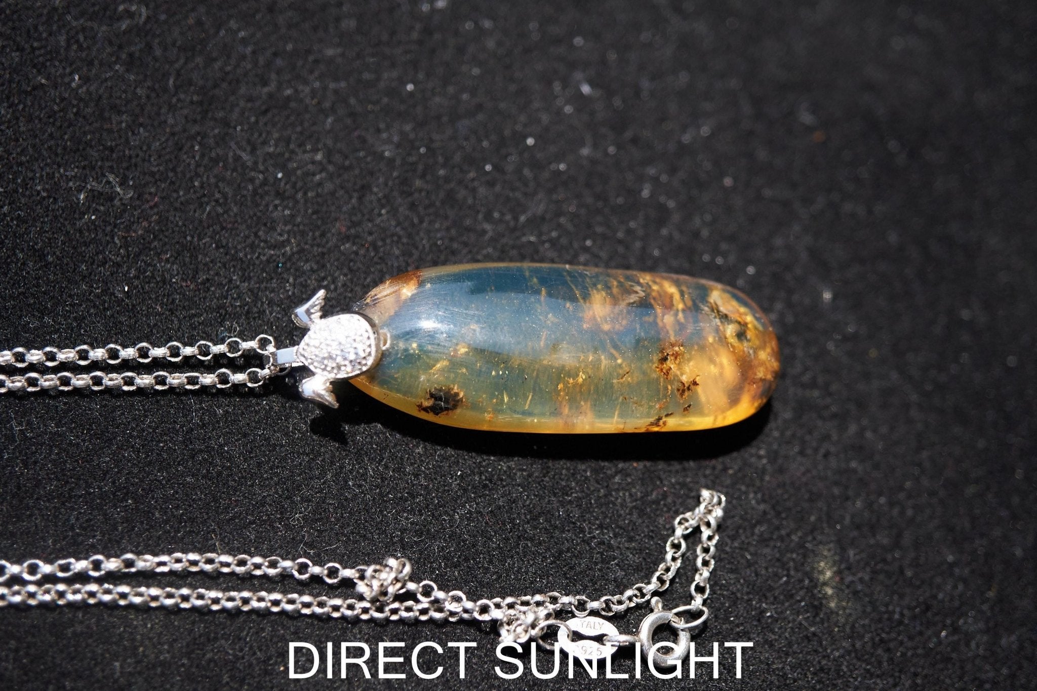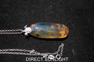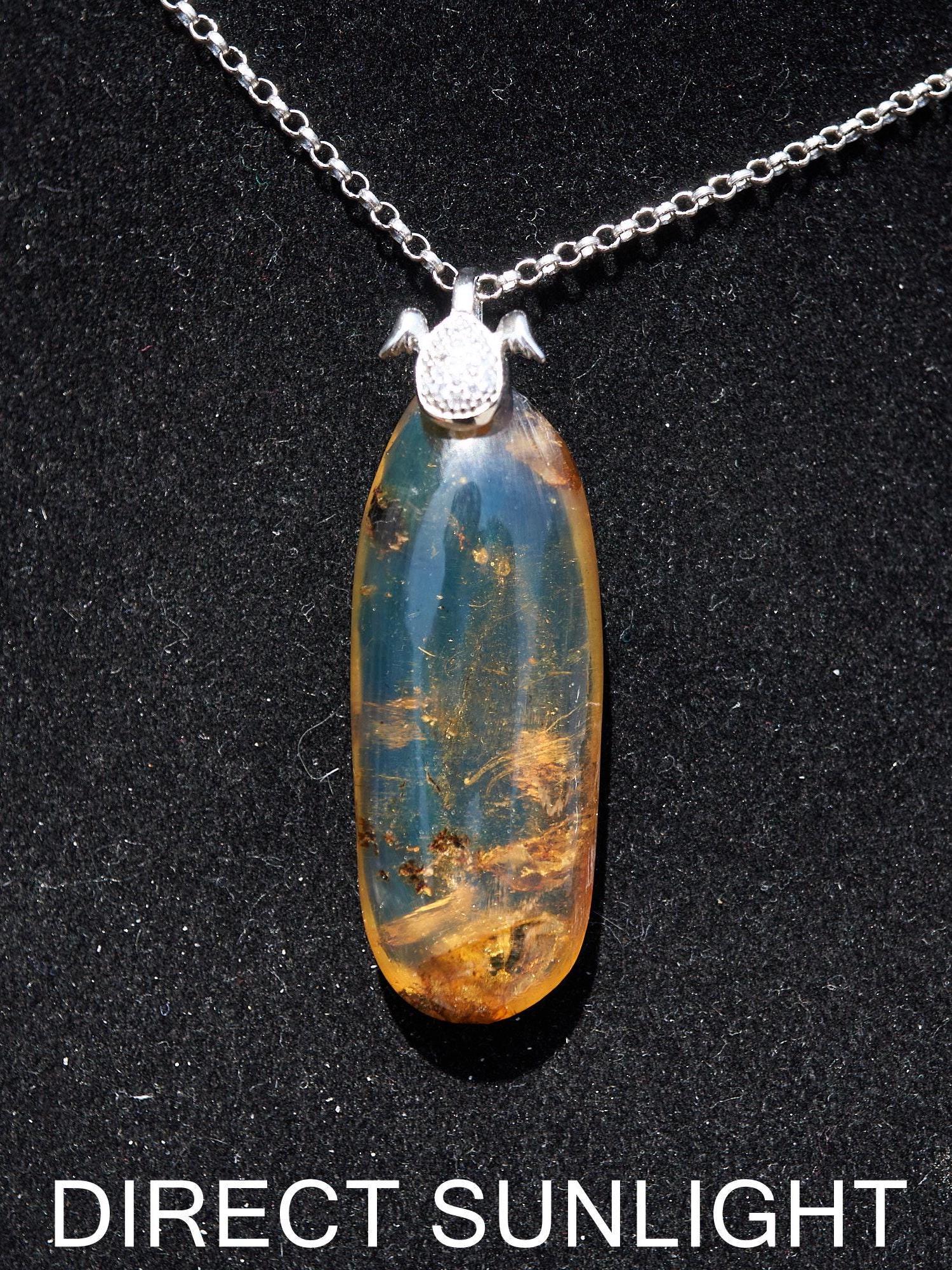 Authentic Dominican Blue Amber Pendant in 925 Sterling Silver – Strong Blue Glow in Sunlight.
