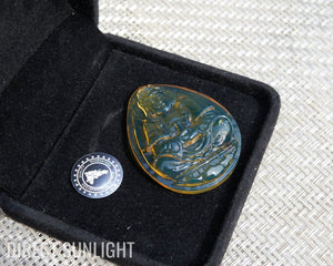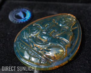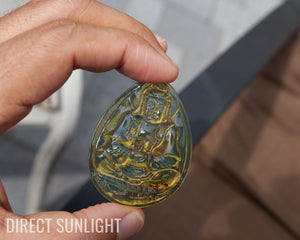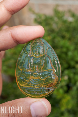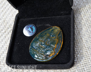 ❍ Hand-carved Dominican Blue Amber Pendant Natural Shaped Carving.