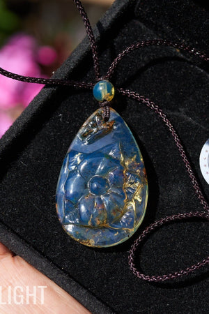 ā Hand-carved Dominican Blue Amber Pendant Natural Flower Shaped Carving.