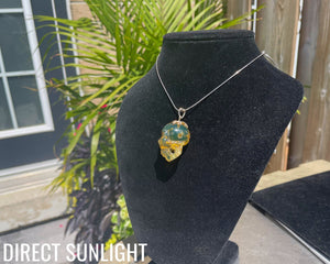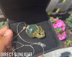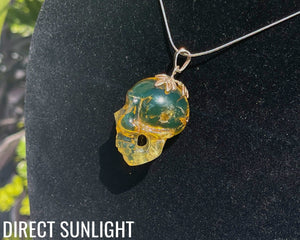 Authentic Dominican Green Amber Skull Pendant - 97% Clarity