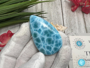 high-quality Larimar cabochon, a natural gemstone prized for its serene Caribbean blue hues and delicate white patterns. Hand-polished to perfection, this one-of-a-kind gemstone is ideal for creating unique jewelry, whether as a statement pendant,