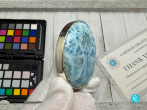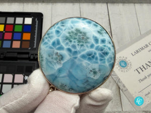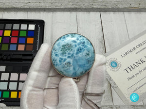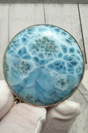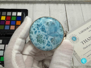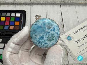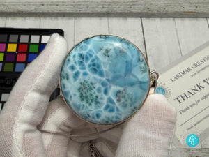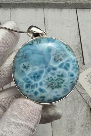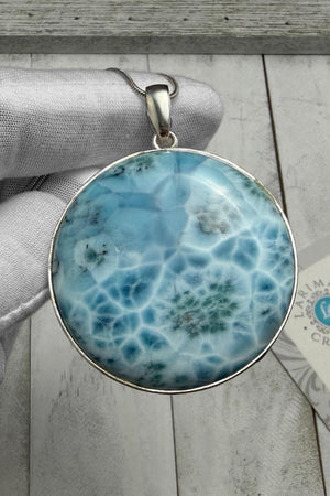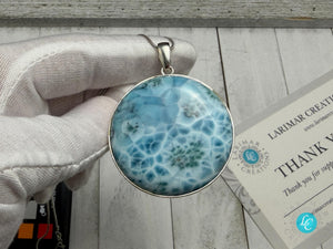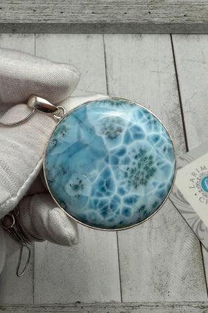Large Round Larimar Pendant | 925 Sterling Silver