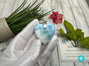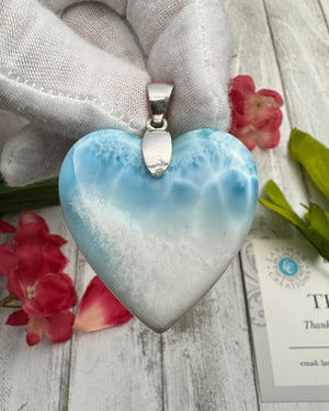 Don't just wear jewelry. Embrace the story, the magic, and the love that is embedded in every facet of this exquisite Larimar heart-shaped pendant. Let it be your talisman of tranquility, a keepsake of beauty, an expression of love – a true gem that speaks directly to the heart.