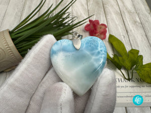 This Larimar pendant, with its serene blue hues reminiscent of the sea, is more than just an accessory; it's a symbol of love and serenity. Its heart shape, universally recognized as an emblem of affection, makes it a perfect gift for someone special or a cherished keepsake for yourself.