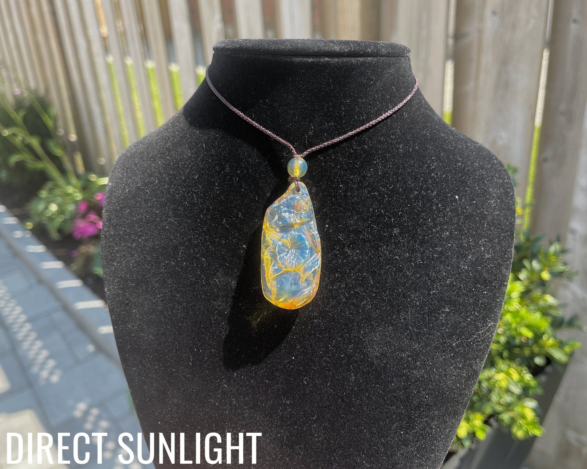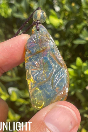 👉🏻You are purchasing a 100% Authentic Natural Blue Amber Dominican Pendant lotus Flower Hand Carved ready-to-wear adjustable rope.