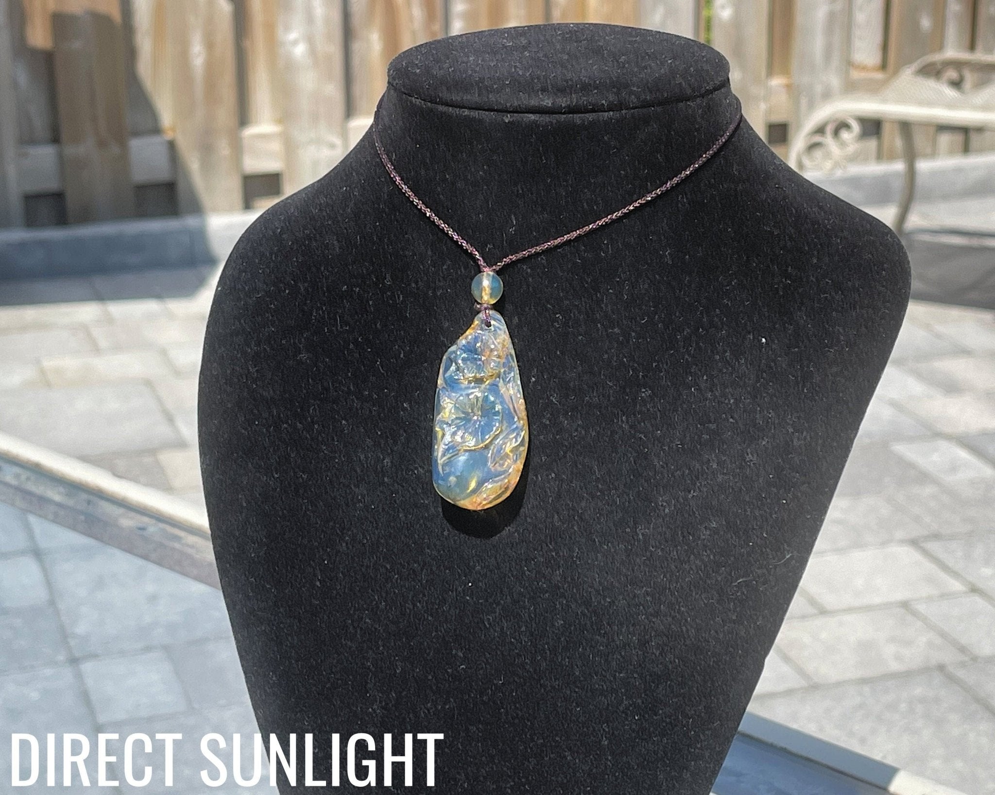 - Materials: Authentic Dominican Blue Amber Flower Carving
