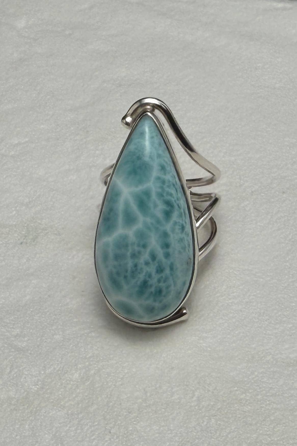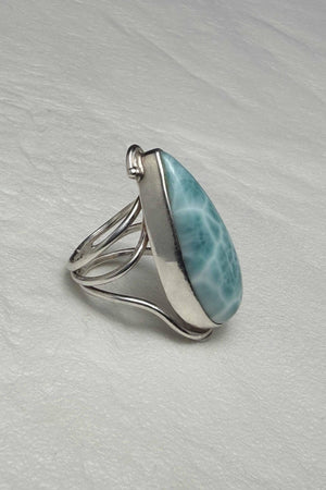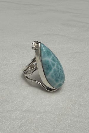 Sterling Silver Larimar Teardrop Ring Size 6.5