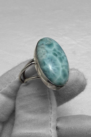 Larimar Ring – Genuine Dominican Blue Stone | Handmade Sterling Silver Jewelry